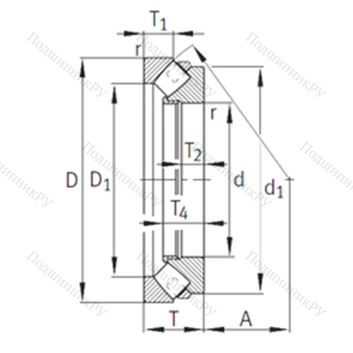 - Обладает более широкой зоной передачи усилий в сравнении с шарикоподшипниковыми аналогами, однако предназначен исключительно для работы с малыми скоростями вращения.