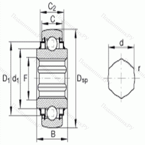 сферическое наружное кольцо, внутреннее кольцо с шестигранным отверстием, двустороннее R-уплотнение