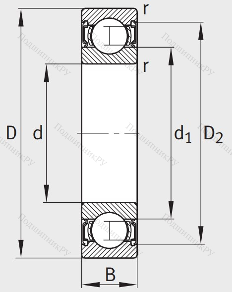 Однорядный шариковый подшипник 6007 2RSR