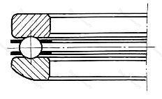 Подшипник упорный шариковый одинарный со свободным самоустанавливающимся кольцом без подкладного кольца 28205 в конструкцию которого входит свободная внешняя и тугая внутренняя шины (последняя жестко фиксируется на валу), сепаратор и заключенные в нем тела качения. При наличии двух рядов шарикоподшипников изделие комплектуется парой сепараторов. Может иметь подкладную обойму.